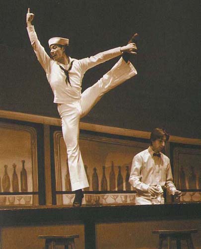 Классика американского танцевального театра — мюзик-холл. Потому-то одноактная шутка Джерома Роббинса «Матросы на берегу», которую лихо сплясали горячие латинские парни под музыку Леонарда Бернстайна, доставила. Для нас это была Америка стереотипов, а для Америки это — священная история отечественного балета. Истинная правда, это было неплохо. Затянуто, да, но нужно помнить, что сочинял свой хореографический опус Роббинс тогда, когда у людей было много свободного времени. Ярко, весело. Похоже, визуальный ряд своего «Кэреля» Фассбиндер подсмотрел в декорациях Оливера Смита и костюмах Кермита Лава. Балет 1944 года, и, зная хватку американских профсоюзов, трудно предположить, что его оформление с тех пор изменилось. За приверженность традициям и охрану авторских прав можно похвалить. Вот только стереотип остается стереотипом.