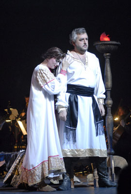 Само собой получается, что не Марфа Собакина (Наталья Дмитриевская), не Любаша (крепкое меццо Надежда Кривуша), но опричник Григорий Грязной (засл. арт. РФ Петр Макаров) становится героем сцены. И это удивительно, поскольку я, например, всегда ценил «Царскую невесту» из-за прекрасной партии, написанной для меццо-сопрано, и слушал оперу ради нее.