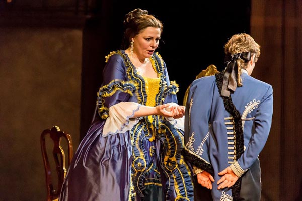 Поэтому, узнав о возвращении оперы на сцену Большого, я позвонил Екатерине Годованец, величественной и нежной Маршальше премьерной серии, чтобы узнать, ждать ли певицу в Москве. С горечью услышал, что нет: ее из Германии на «Кавалера розы» не позвали. Стало грустно: княгине Марии Терезе фон Верденберг не всякая певица подойдет – тут не только голос, но и другие достоинства необходимы, включая, как ни странно, зрелую, но без увядания, женственность. Поскольку Маршальша вовсе не стара, как это может показаться из невнимательного знакомства с оперой. Госпоже фельдмаршал примерно тридцать два. Или тридцать пять, если вы критически к ней настроены. Короче, она молода, красива, а то, что ее любовник – не будем ханжами и признаем: именно любовник – юноша семнадцати лет от роду, говорит лишь в ее пользу.