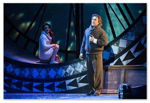Сделать часы «ходячими» не такая уж большая премудрость, но режиссеру захотелось того, что мы увидели. Огромный циферблат, за которым – Париж со всеми своими Елисейскими Полями и Эйфелевыми башнями. Картинка остается пассивной, пока не отмечаешь, что ты вместе с Мими и Рудольфом – по ту сторону циферблата, где время идет вспять. Осознав часы всего лишь окном лофта, выходишь наружу, чтобы сохранить верную точку зрения. И вот – ты в Париже, летишь над avenue des Champs-Élysées, но и остаешься все же внутри богемной каморки, вознесенной над крышами Монмартра. Значит, часы здесь не для времени, они – для пространства. И его преодоления. Эта внутренняя постоянная смена точек зрения – штука очень кинематографичная, и она лишь усиливается ко второму действию, очень яркому, многолюдному и насыщенному. Парадоксами тоже.