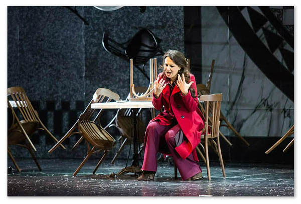 Кажется, именно эту немудреную мысль и проводит на сцене Исаакян, абсолютно не заботясь о верных опорных точках хронологии. Он играет со временем, чтобы поместить героев в вечное всегда, а нас – внутрь их. Даже Эйфелева башня не говорит ни о чем: опера написана после ее возведения. Смешение стилей если и преследует какую-то цель, то она остается скрытой от зрителя. Отнести начало оперы к 40-м гг. ХХ века не дает известный исторический факт: оккупация Франции – а на сцене ни одного немца. Поэтому финальные костюмы 70-х гг. ХХ в. с пояснением «Тридцать лет спустя» лишь запутывают. Но спектакль, повторяю, удался не вопреки, а, как мне кажется, благодаря этим нарочитым несуразностям. Нарочитым – ведь нестыковки реальности как прототипа спектакля считываются на раз. А если подойти к прочтению увиденного с точки зрения кинематографа?